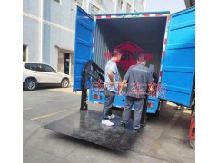 2.车尾配三套翻转爬梯(框架式结构),便于不同宽度的履带车自行上落,爬梯底部设计重载导向轮,前部配牵引架便于运输起吊;