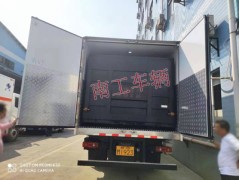 3.车体前部上方配三个器材箱,规格长0.68米,宽0.75米,高约1.7米,内部两层高度可调层板,层板表面材料铝合金;
